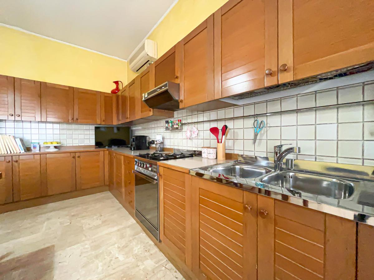 Varcato l’ingresso, si viene accolti da un disbrigo centrale che funge da elemento di collegamento armonioso tra tutti gli ambienti della casa. La zona giorno si apre su un ampio soggiorno caratterizzato da metrature generose che permettono una distribuzione versatile degli arredi. La cucina, separata e ben organizzata, è dotata di porta finestra che garantisce un’eccellente luminosità naturale e un comodo accesso agli spazi esterni.